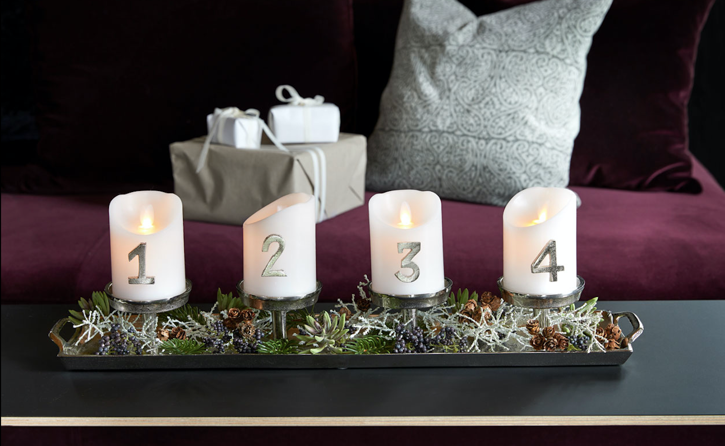 Snygga siffror i nickelbelagd aluminium till blockljusen i adventsstaken.