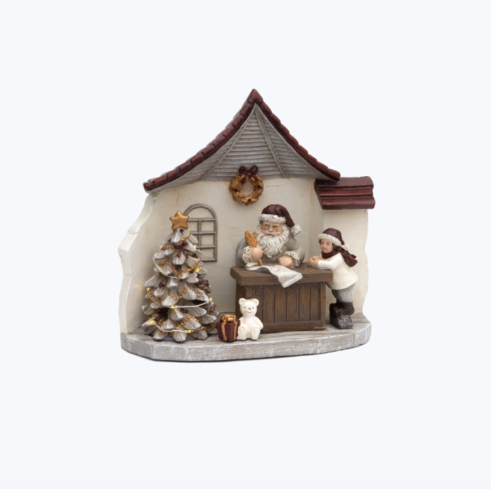 Skapa en underbar julstämning i ditt hem med Christmas Spirit-produkterna. Denna handmålade, stämningsfulla julklappverkstad är full av fantastiska detaljer. Julgranen lyser upp med LED-ljus och drivs av AAA-batterier.