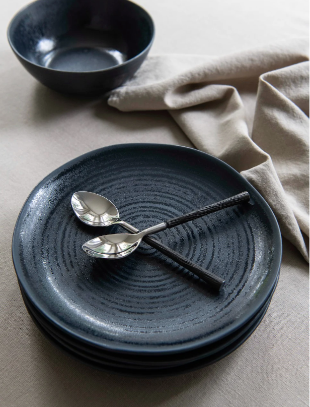 Midnight on käsitsi valmistatud keraamiline sööginõude komplekt, millel on kaunis, sügavsinine värv. Pind on töödeldud reaktiivse glasuuriga, mis teeb iga osa ainulaadseks. Õhtusöögitaldrikul on dekoratiivne spiraalmuster. Nõud on nõudepesumasinakindlad.