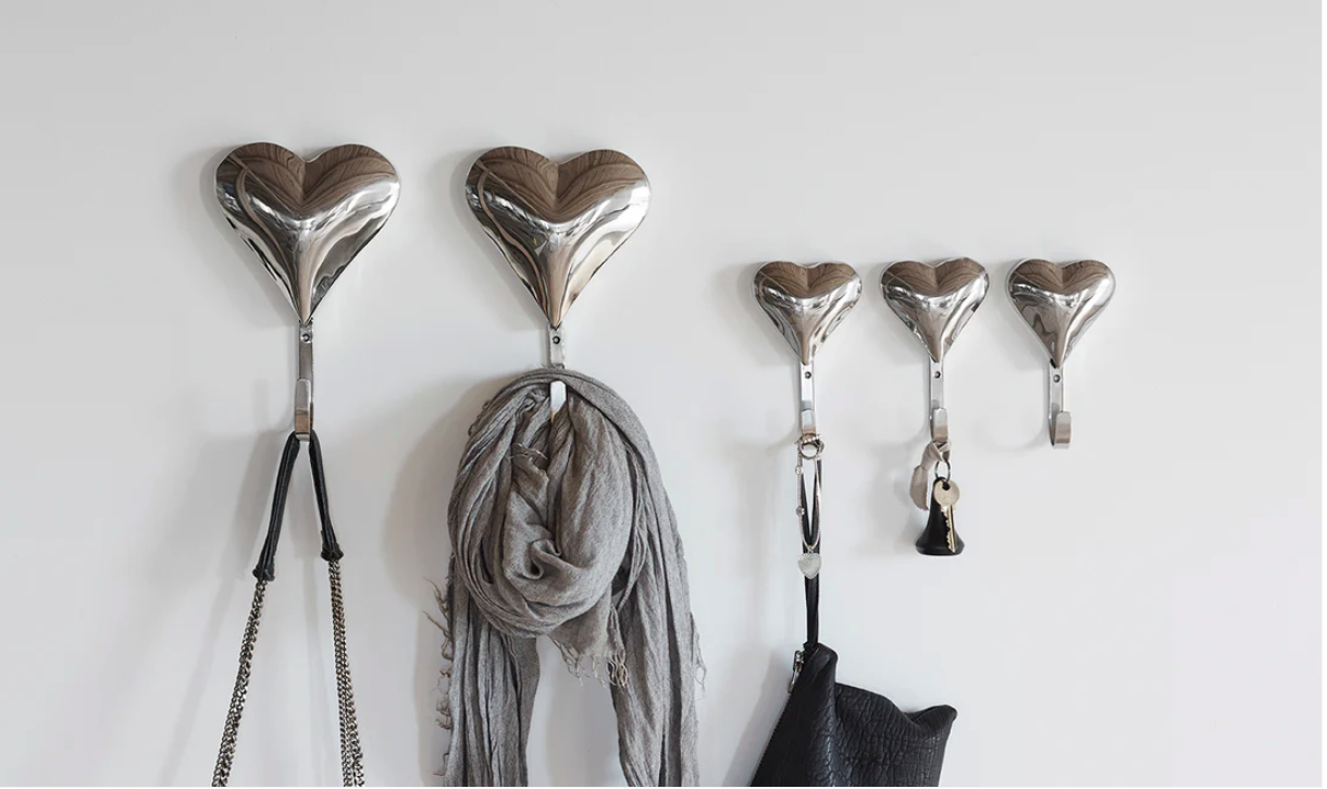 Dekorativa väggkrokar i rostfritt stål. Passar i hallen såväl som i sovrummet och barnrummet.