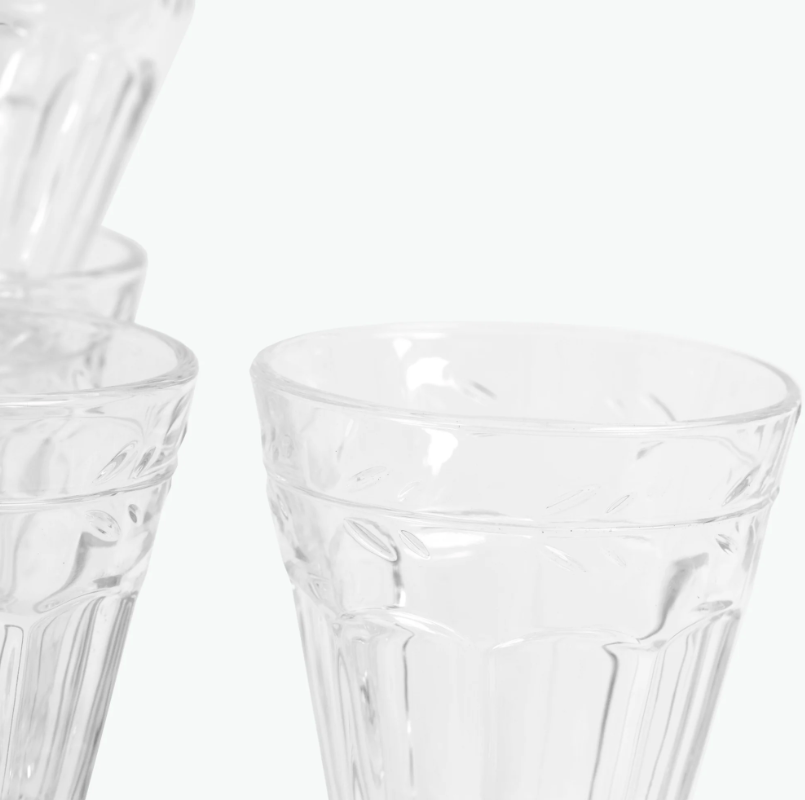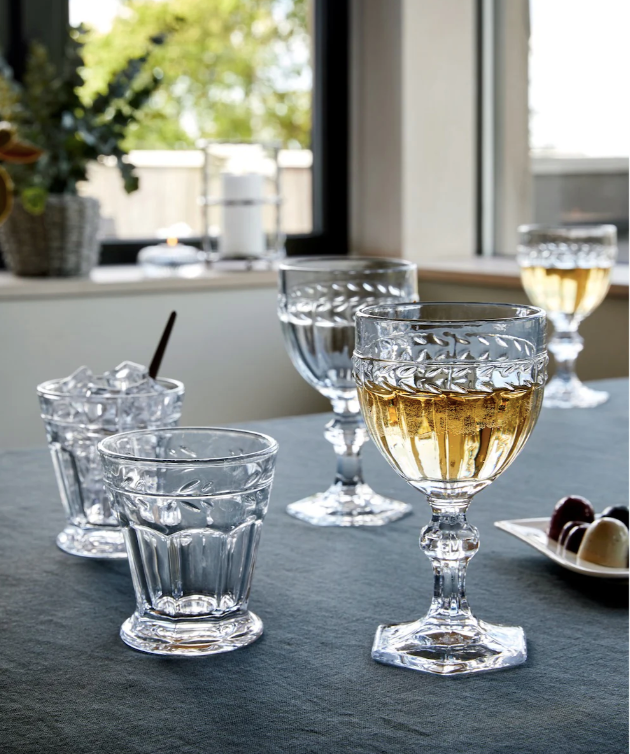 Ljuvliga vattenglas gjorda av pressglas med ett vackert bladmotiv. Boheme vattenglas passar väl ihop med allt av serviser och bestick.