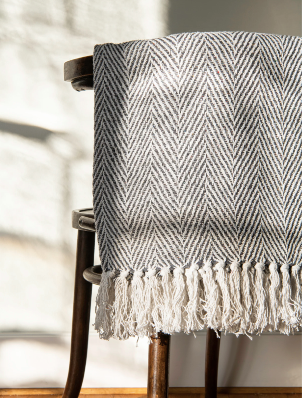 Cardiff är en mjuk och skön pläd som är handgjord av 100% återvunnen bomull. Perfekt att svepa sig i, en sval sommardag på verandan eller när du sitter i soffhörnet och tittar på din favorit TV-serie. Pläden har ett snyggt zigzag-mönster i behagliga färger och har fransar på kortsidorna. Kan tvättas i 40 grader (skonsam tvätt).