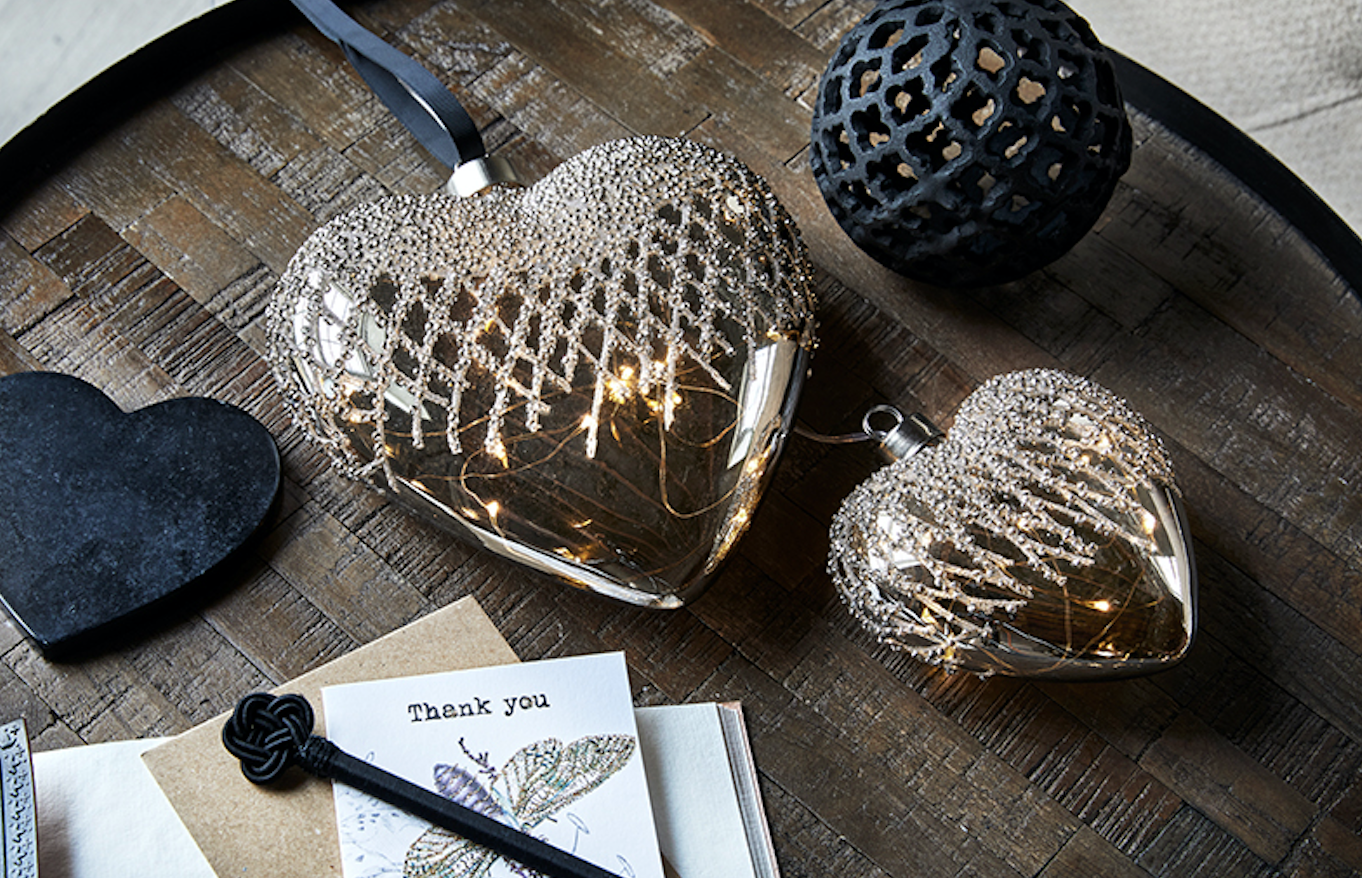 Charleston hjärta m. LED-ljus 12 cm