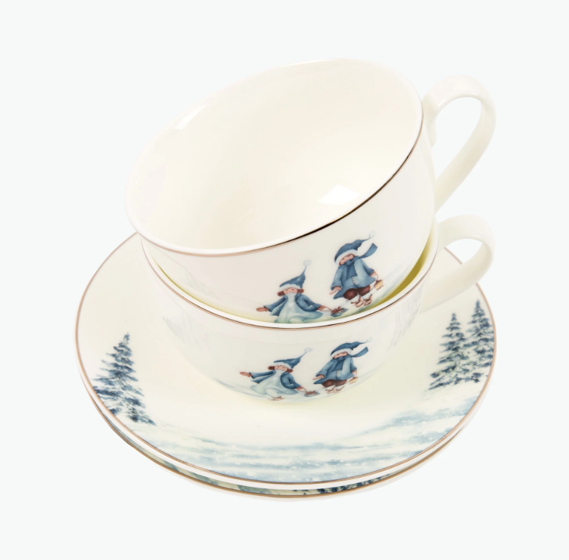 Få fin julkänsla med denna stämningsfulla kopp och fat gjord av porslin med högkvalitet.