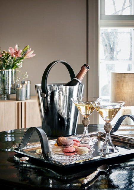 Exklusiv och läcker vinkylare i rostfritt stål med läderhandtag som sätter pricket över i:et när du ska servera vin eller bubbel. Vinkylaren är även vacker att ha blommor i.