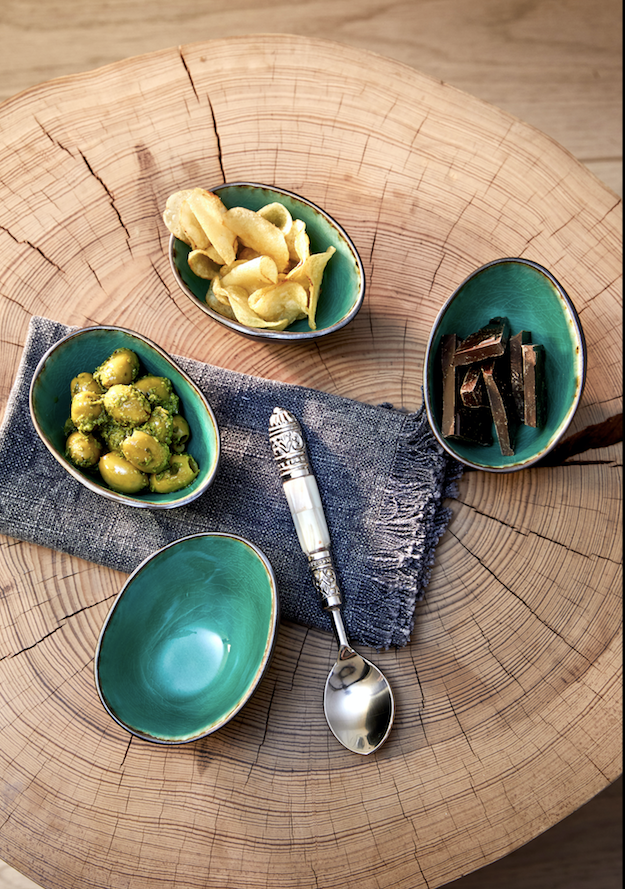 Duka ett färgglatt och glädjespridande bord med Green Jungle stengodsservis. Denna läckra servis är handgjord och har vackra organiska former som har inspirerats av naturen. Servisens yta har en helt speciell reaktiv glasyr med en spännande krackeleringseffekt. Kombinationen av de vackra organiska formerna och den reaktiva glasyren gör att ingen av servisens delar är lika. Detta ger Green Jungle en karaktäristisk prägel och gör servisen helt unik.
