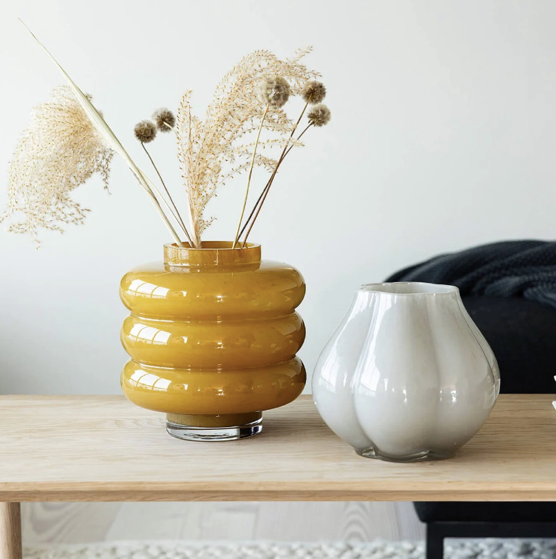 Honey-vasen är en riktig blickfångare i ditt hem! Vasen är tillverkad av munblåst glas, vilket gör varje produkt unik. Den fungerar lika bra som dekoration på egen hand som med blommor.