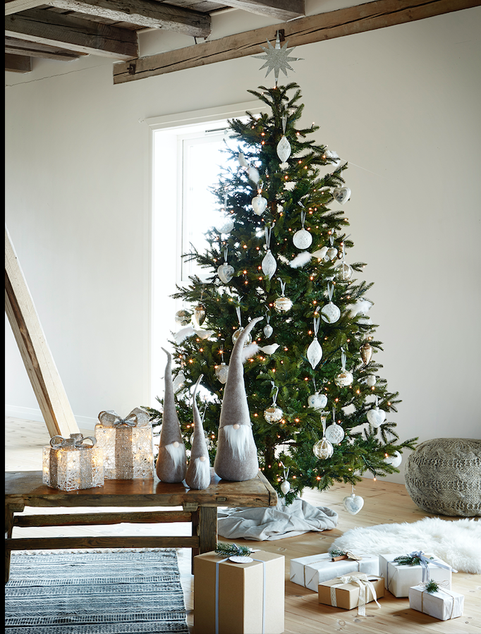 Skapa extra julstämning med vår vackra julgran som lyser upp julen. Granen är tillverkad av plast och står på fot. En ljusslinga kommer också med granen. Vi rekommenderar att du använder lådan för förvaring när granen inte är i användning. Granen finns i 2 olika storlekar.