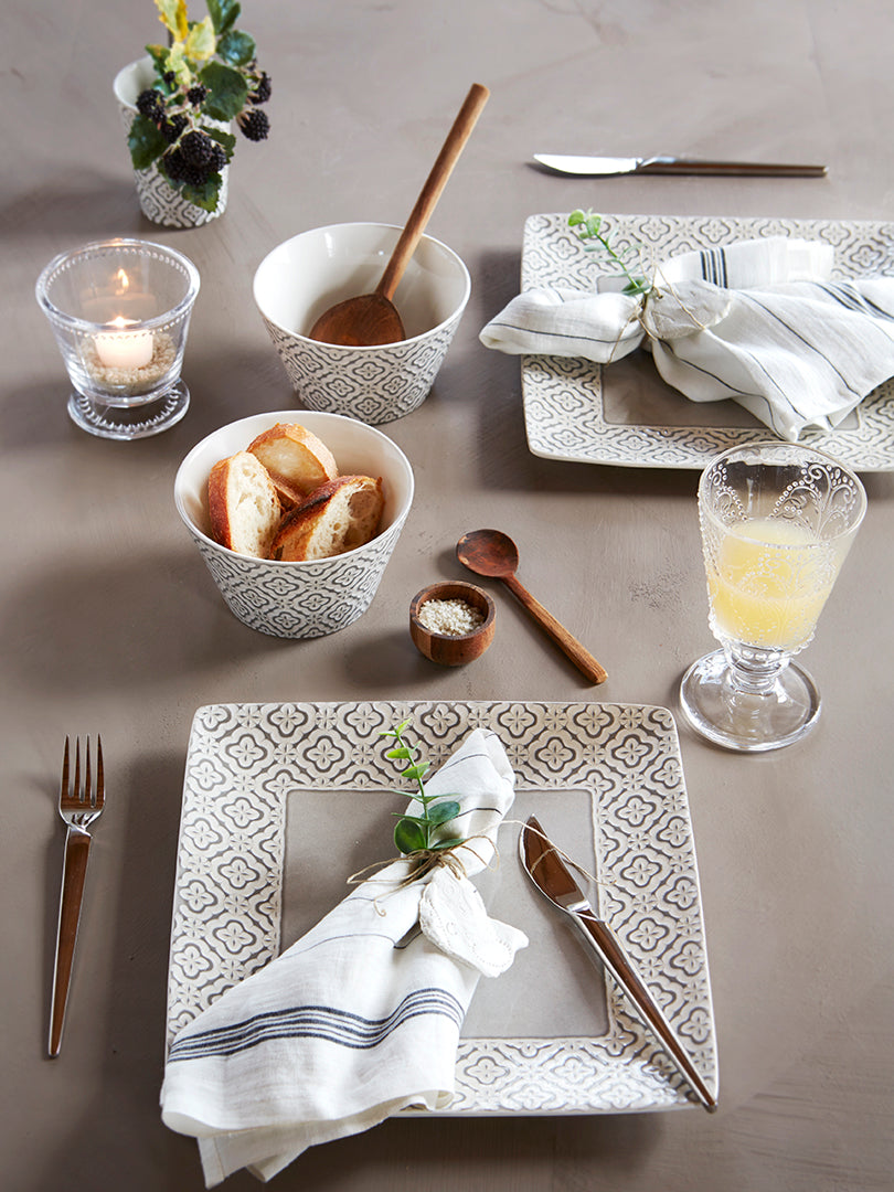 Nadine är en servis med en läcker design. Middagstallriken har ett dekorativt mönster.