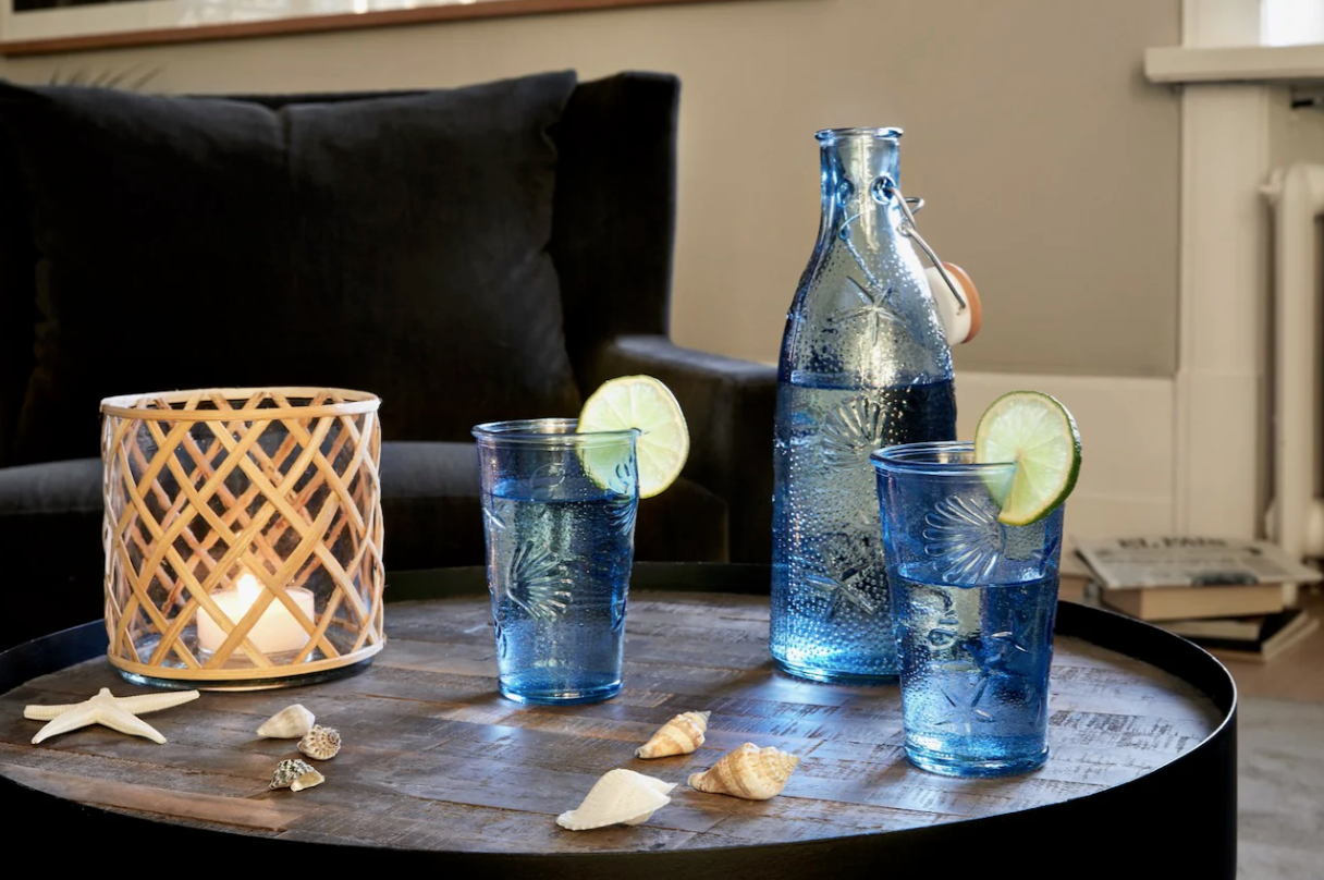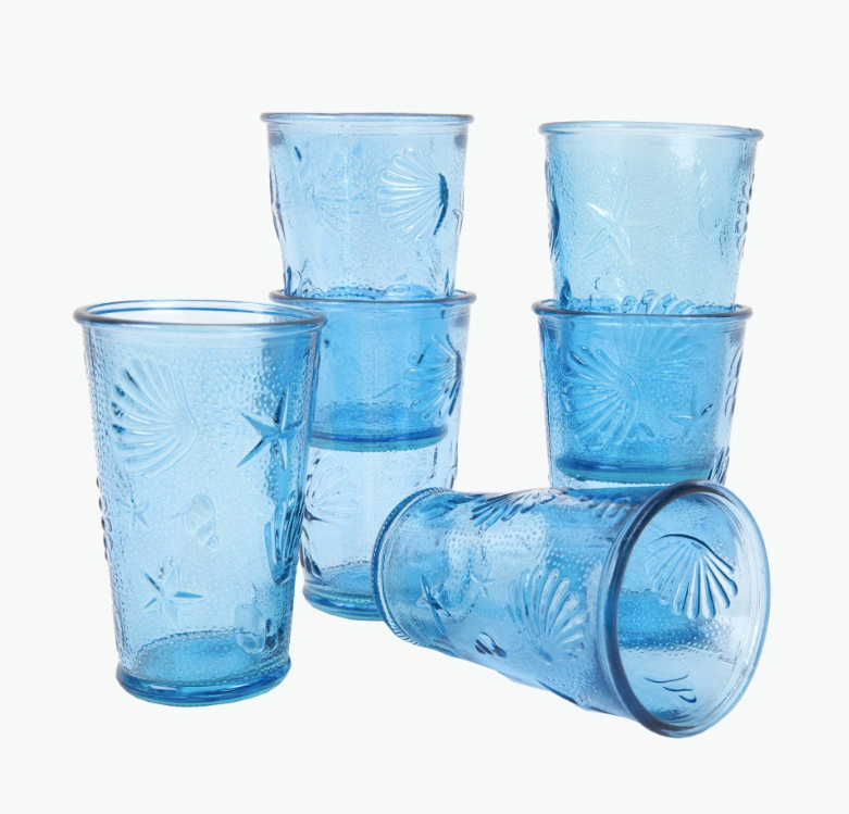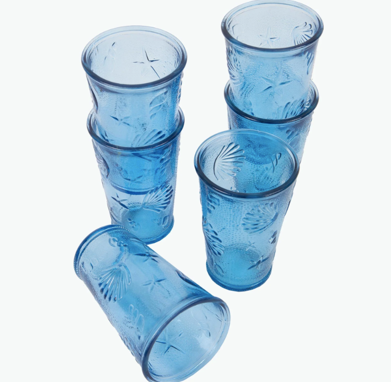 Oceano hedrar sommaren! Denna läckra serie är tillverkad av återvunnet glas med ett somrigt snäck- och sjöstjärnemönster. Dessa glas passar ihop med de flesta serviser och är pricket över i:et när du ska servera förfriskningar ute i trädgården eller på balkongen.