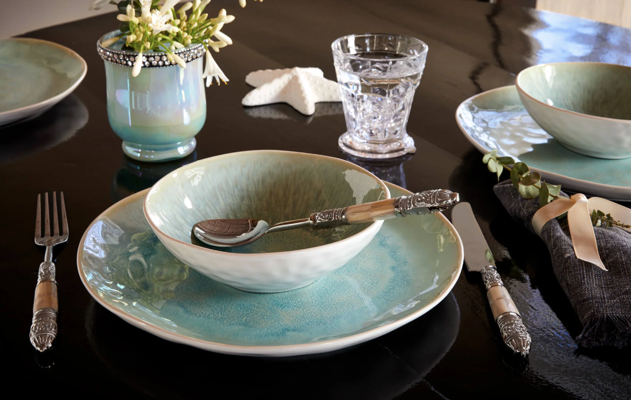 Duka ett smakfullt och somrigt bord med Summer Breeze stengodsservis. Servisen har en organisk design och en vacker gräddvit utsida. Invändigt har det lagts en reaktiv glasyr som ger servisen en underbar och dov turkos färgnyans. Summer Breeze framkallar den härliga känslan av sol, sommar och hav hela året.