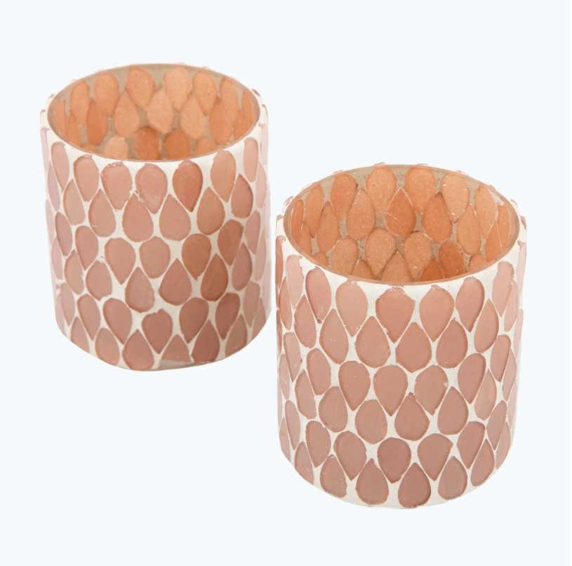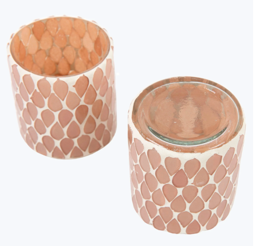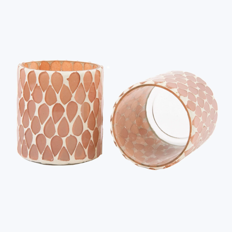Underbart fina värmeljushållare dekorerade med rosa glasmosaik som ger ett vackert färgspel. Först munblåses glaset, därefter läggs den fina mosaiken på för hand. Rosalin värmeljushållare ger ett ljuvligt sken när man tänder värmeljus i dem.
