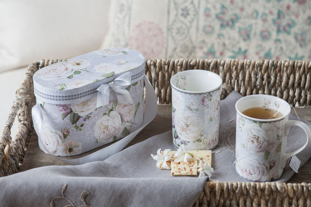 Fina muggar i porslin med vacker presentförpackning. En fin gåva.