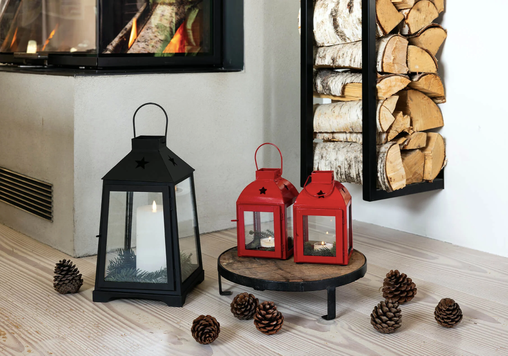Mysig lykta med stjärndekor. Lyktan är handgjord i rödmålat järn och klart glas. Dekorera den gärna med granris och kottar för att skapa den goda julkänslan. Säljs även som 1 st.