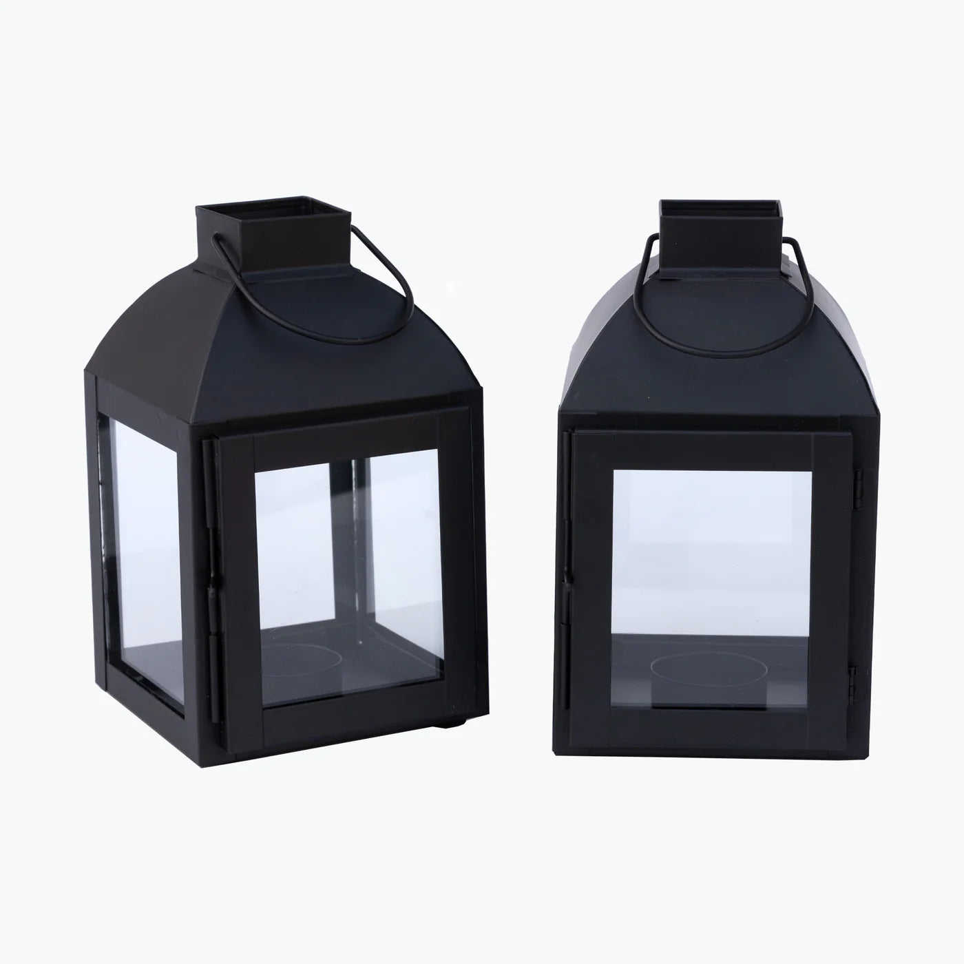 Klassisk lykta med moderna drag. Lyktan som är svart har handtag och är tillverkad av pulverlackerat järn. Dessa är söta exempelvis på bordet, fönsterbrädan och i badrummet för att skapa värme och ljus när kvällen faller på. Fungerar med värmeljus. Du kan köpa dem individuellt eller i ett set om två.