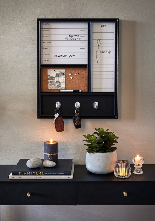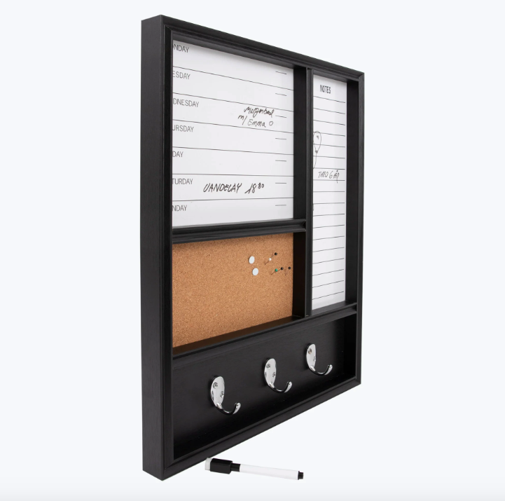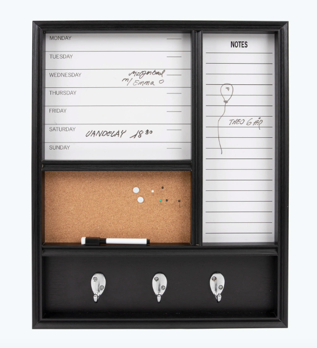 Håll koll med denna superpraktiska och dekorativa veckotavla. Weekly veckotavla har whiteboard och korktavla i tillägg till krokar. Veckotavlan passar i hallen, i köket, eller i barn- eller ungdomsrummet.